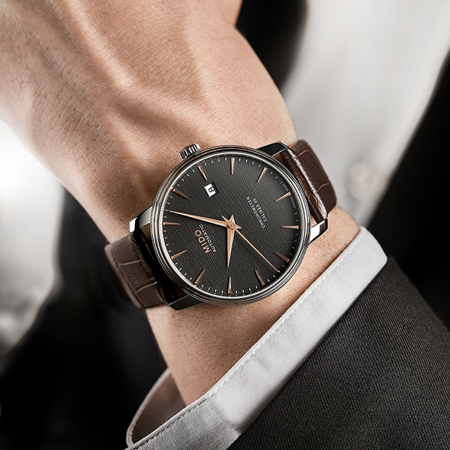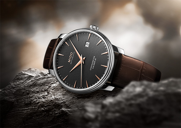 Những đường nét sắc sảo cho một chiếc đồng hồ kết hợp của sự thanh lịch và chính xác. Baroncelli Chronometer Silicon mới có mặt số nhám được lấy cảm hứng từ các phiến đá, tạo nên lớp nền sang trọng và mới lạ. Các chỉ số và kim được xử lý PVD vàng hồng tạo ra một sự tương phản tuyệt vời, với thiết kế bóng bẩy của vỏ thép tròn. Một chiếc đồng hồ với vẻ ngoài cổ điển và vượt thời gian, Baroncelli Chronometer Silicon trang bị bộ máy Chronometer được chứng nhận COSC có lò xo cân bằng silicon. Ngoài các đặc tính chống từ tính, bộ máy này mang lại độ chính xác lâu dài hơn so với lò xo cân bằng tiêu chuẩn và chống sốc tốt hơn. Caliber 80 cung cấp khả năng dự trữ lên đến 80 giờ. Baroncelli Chronometer Silicon thể hiện hoàn hảo kỹ thuật điêu luyện của Mido trong việc thiết kế đồng hồ kết hợp với sự đổi mới và truyền thống chế tạo đồng hồ.
