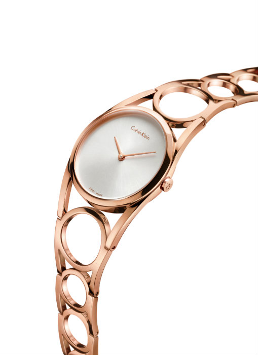 Một chiếc đồng hồ cực kỳ thời trang, bởi nó mang hình hài một chiếc vòng tay cho phái đẹp. Đặc tính Calvin Klein được thể hiện cực kì rõ nét trong những chi tiết cut-out hình học nửa muốn khoe khoang nửa lại muốn giấu đi vẻ đẹp tròn trịa trắng ngần của cổ tay người đeo nó. Ai đó nói Calvin Klein Round phù phiếm đến giới hạn của nó. Ít nhất là trong chiếc đồng hồ này, bạn có thể mong gì hơn một sự rõ ràng, dễ xem giờ đến thế. Đơn giản, đó là một chiếc đồng hồ của Calvin Klein. Cỗ máy thời gian nhẹ nhàng và thanh lịch này được làm từ thép không gỉ đánh bóng, phủ PVD vàng hoặc vàng hồng với mặt số màu đen, bạc hoặc mặt gương với logo Calvin Klein tại vị trí 12 giờ.