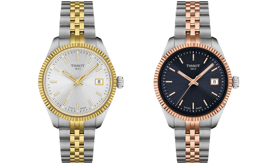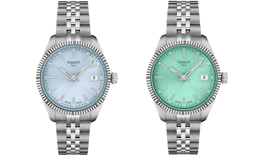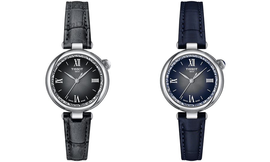 Bên cạnh đó, Tissot đã thêm phần ưu ái phái đẹp bằng cách bổ sung thêm vào bộ sưu tập 2 mẫu sản phẩm với hiệu ứng chuyển màu mê hoặc từ trắng ở trung tâm sang đen hoặc xanh dương đậm ở phần viền. Hai chế tác sở hữu dây đeo bằng da biến chuyển màu sắc theo thời gian.