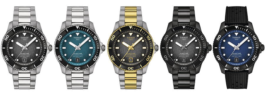 Bộ sưu tập Seastar mới bao gồm 5 mẫu sản phẩm với mặt số được chải dọc và có màu sắc mờ dần sang đen ở phía mép làm tăng hiệu ứng chuyển tiếp màu sắc của mặt số. Mỗi phiên bản được trang bị viên xoay đơn hướng có lắp vòng kính khoáng.