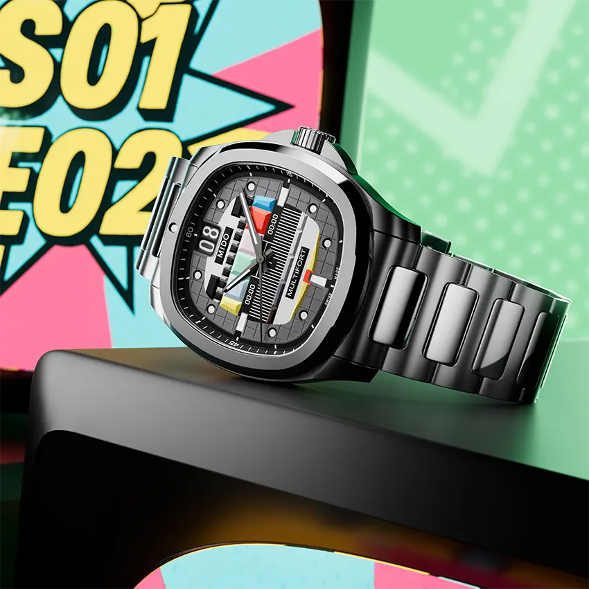 Lấy cảm hứng từ các mẫu sản phẩm năm 1970, phiên bản đặc biệt Multifort TV Big Date S01E02 không chỉ là một chiếc đồng hồ mà là còn là một cỗ máy thời gian đưa bạn trở về những năm tháng rực rỡ. Thiết kế vỏ vuông nguyên thiết kế vỏ vuông “TV” kinh điển với các góc bo tròn được giữ nguyên, kết hợp hoàn hảo giữa hoài niệm và cơ khí Thuỵ Sĩ tinh xảo.