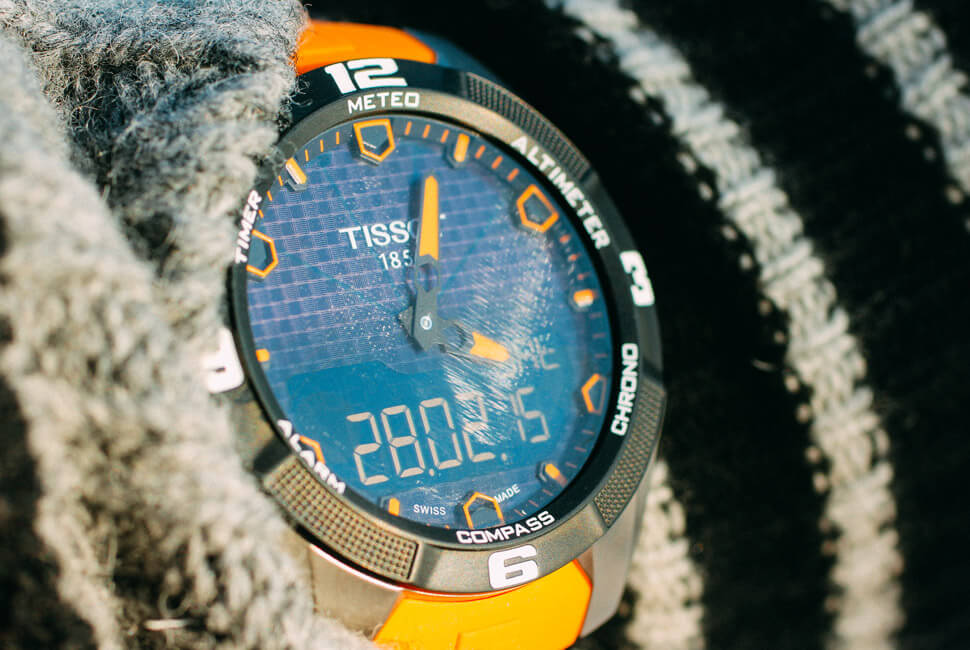 Đối với các loại đồng hồ đeo tay Thụy Sỹ dùng Pin hấp thụ năng lượng từ ánh sáng (Eco-Drive) để trong tủ, hộp và nơi thiếu ánh sáng lâu ngày không được tiếp xúc với ánh sáng đặc biệt là ánh nắng mặt trời trong thời gian từ 3 đến 6 tháng đồng hồ sẽ ngừng chạy, với Tissot T-touc Expert Solar là 1 năm, nếu muốn đồng hồ hoạt động trở lại hãy đem ra để nơi có ánh sáng, tốt nhất là dưới ánh nắng mặt trời trong khoảng thời gian 15 phút thì đồng hồ sẽ hoạt động trở lại. Tuy nhiên không nên để đồng hồ nơi thiếu ánh sáng lâu thường xuyên sẽ làm pin bị chai (hết tác dụng).
