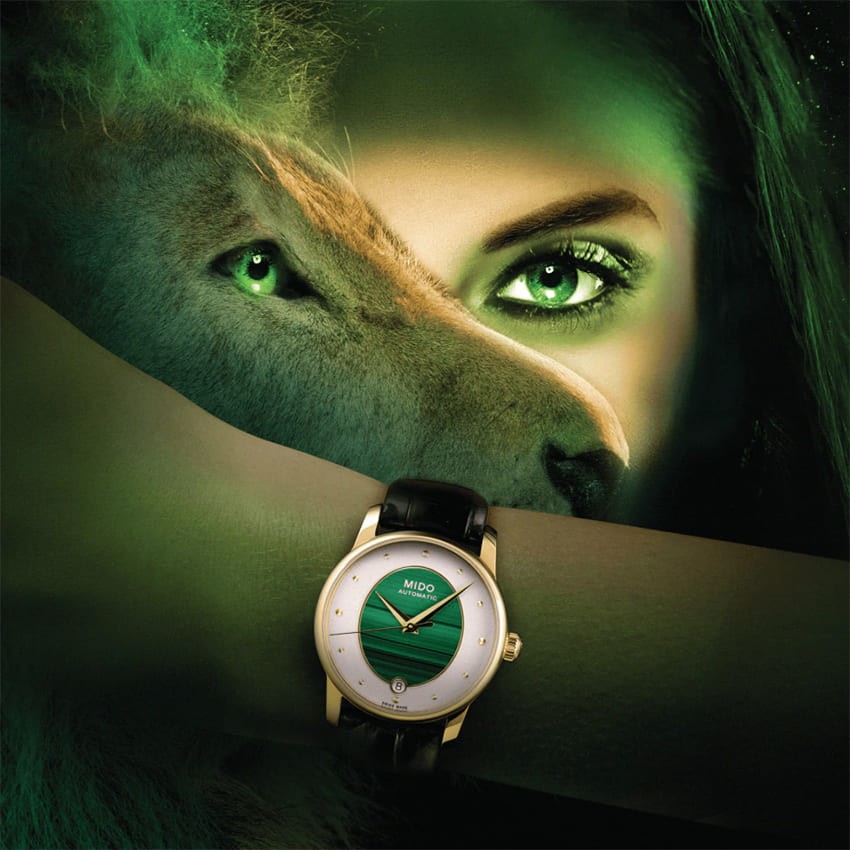 | Màu mặt số | Trắng & Đá lông công Malachite |
