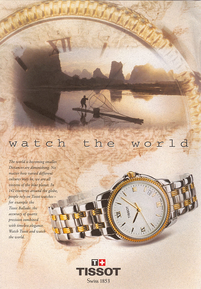Năm 1995, Ballade tham gia chiến dịch quảng cáo “Tissot Watch the World”. “Thế giới đang trở nên nhỏ bé hơn. Khoảng cách đang dần thu hẹp. Dù các nền văn hóa khác nhau có đa dạng đến đâu, tất cả chúng ta đều là công dân của hành tinh xanh. Tại 142 quốc gia trên toàn cầu, người ta tin tưởng vào đồng hồ Tissot – ví dụ như Tissot Ballade: độ chính xác của bộ máy thạch anh kết hợp với vẻ đẹp vượt thời gian. Ngắm nhìn đồng hồ Tissot và Ngắm nhìn Thế giới”