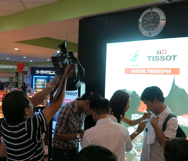 Nhân dịp này, Tissot cũng giới thiệu 8 mẫu đồng hồ phiên bản Asian Games 2014, trong đó có 2 mẫu được sản xuất với số lượng giới hạn chỉ 2014 chiếc trên toàn cầu. Tất cả được thiết kế với các điểm nhấn màu đỏ – màu sắc chính của Á vận hội và mang logo cua Á vận hội ở mặt sau. Mỗi mẫu có kiểu dáng, chức năng riêng biệt. Độc đáo nhất là các mẫu cảm ứng với các chức năng hữu ích dành cho các hoạt động thể thao và dã ngoại.